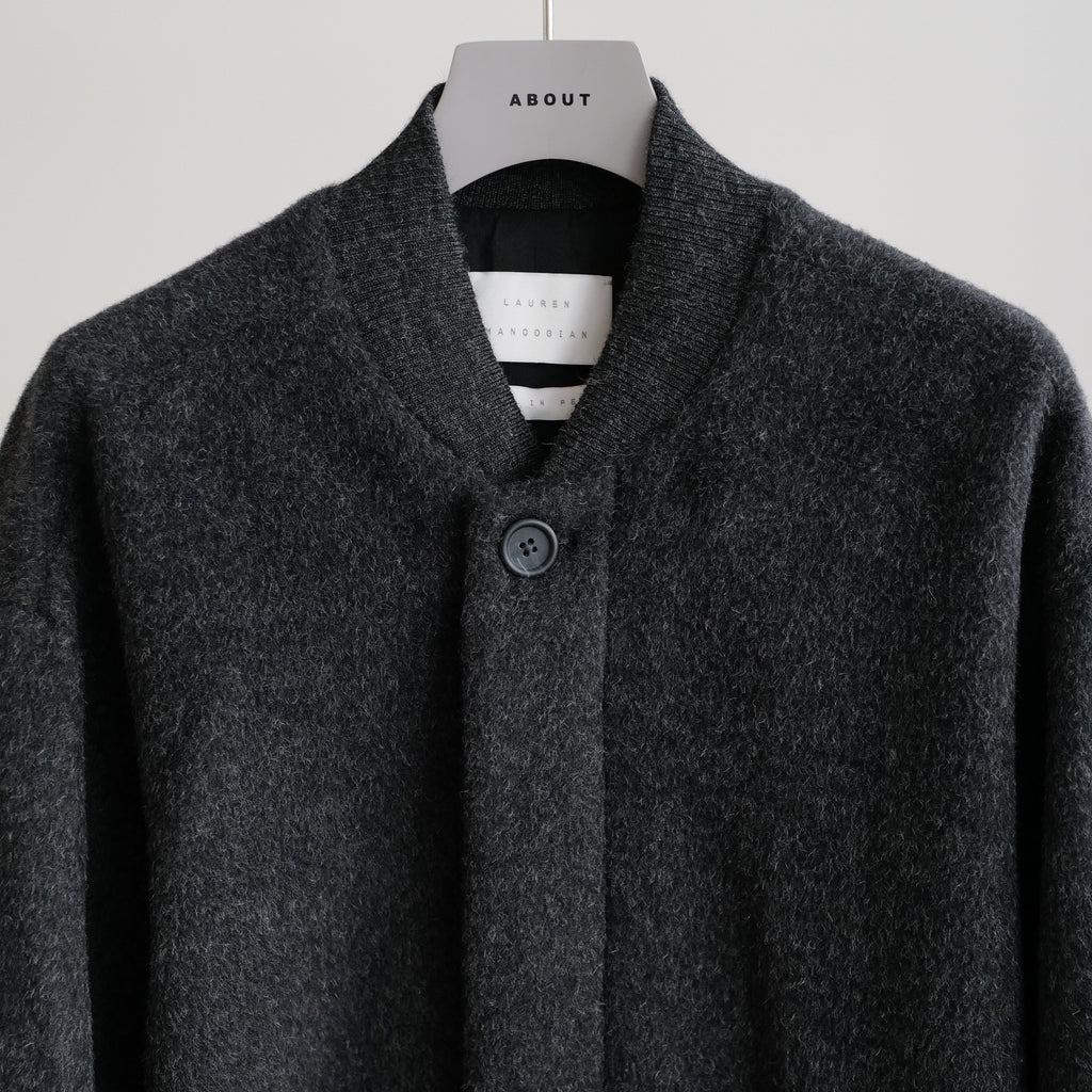 リラックスフィットのボンバージャケット ベビーアルパカを使用した、柔らかくやや毛足の長い生地 フロントボタンは比翼仕立てでミニマルな印象