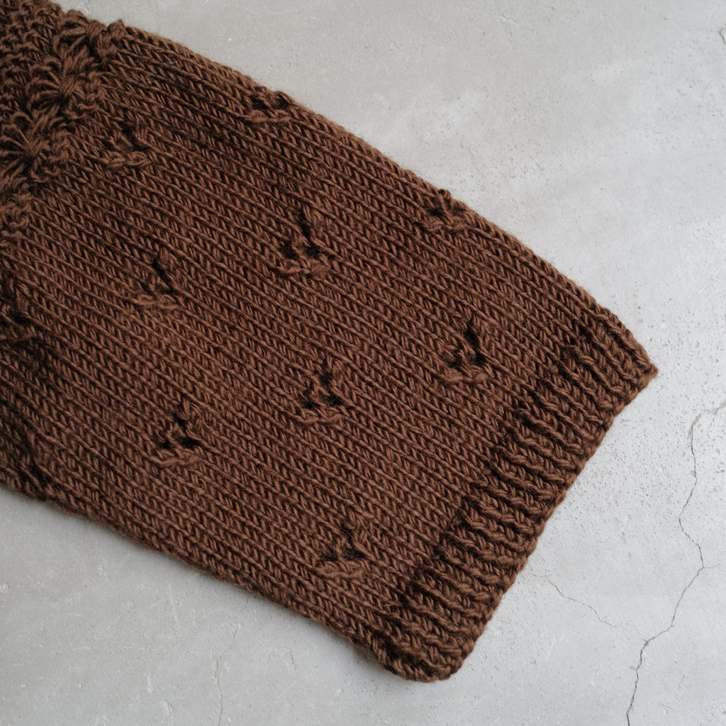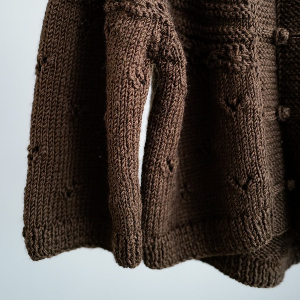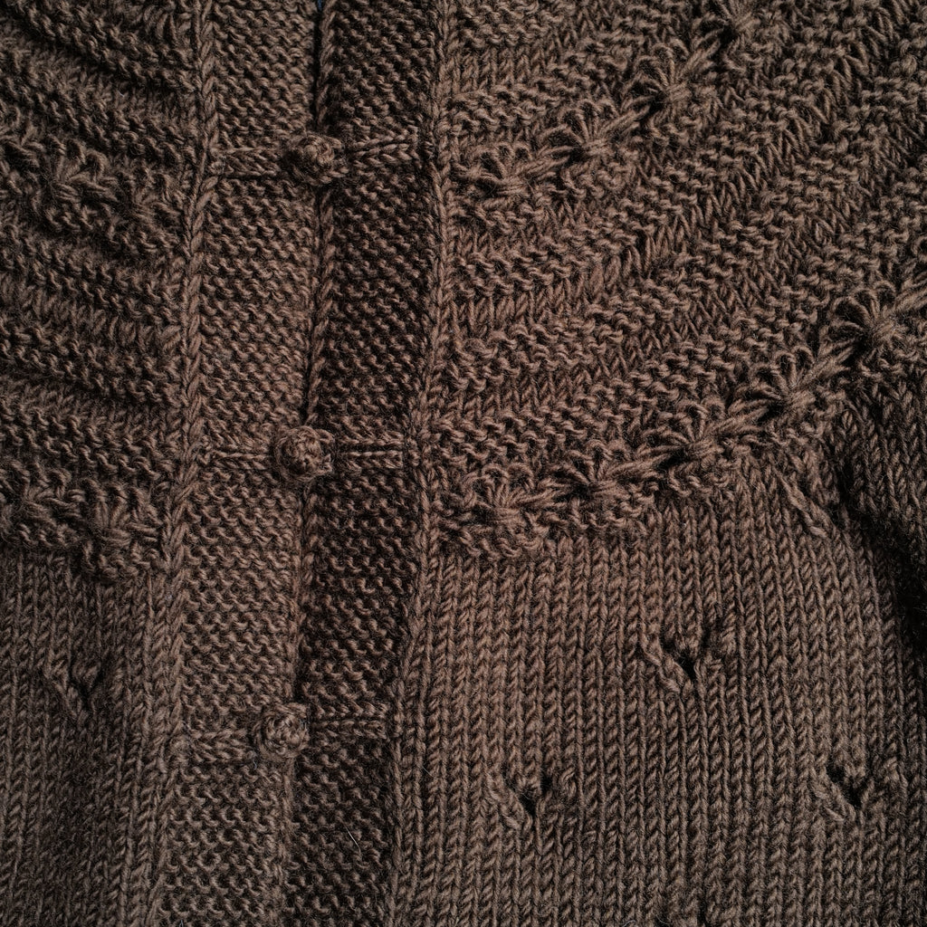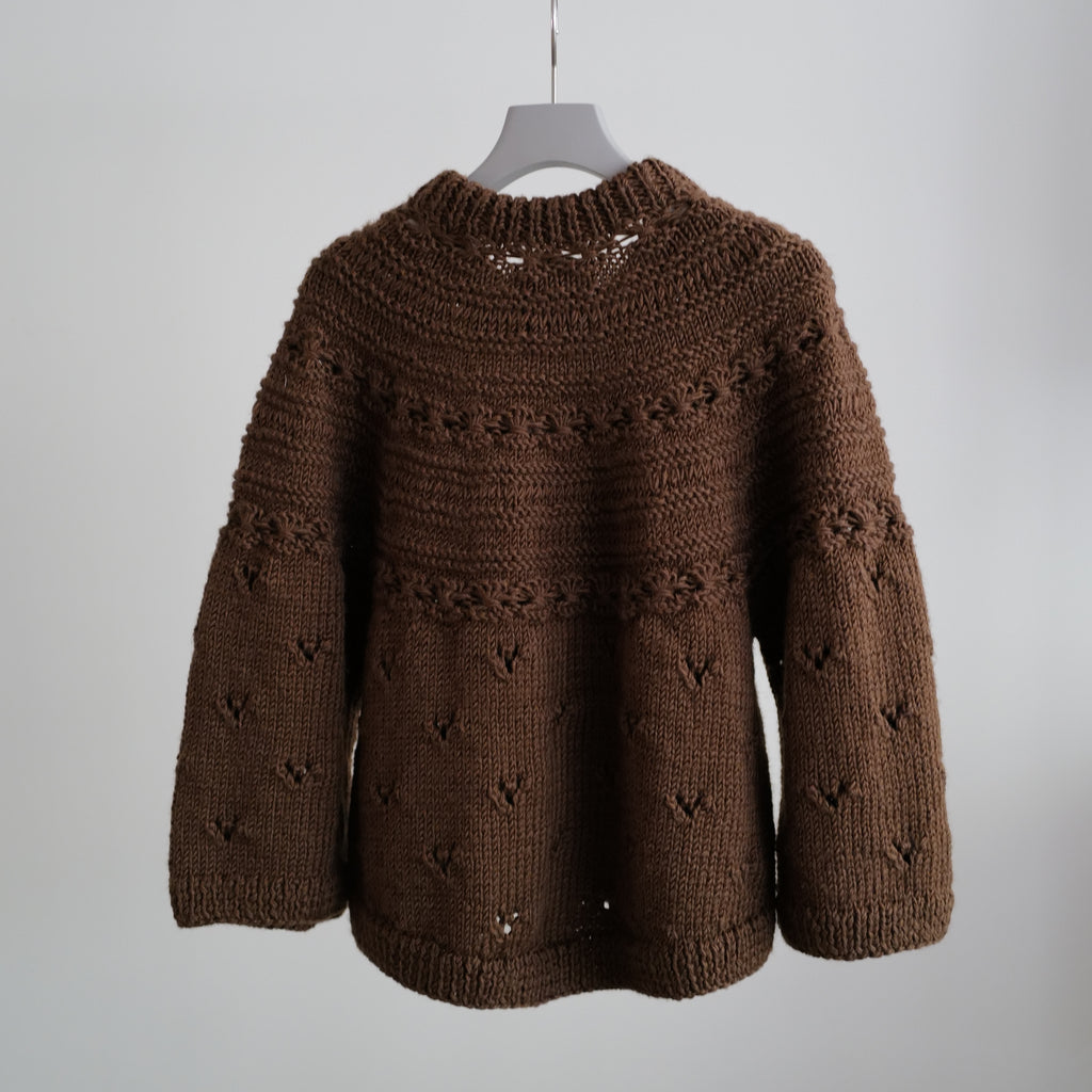 手編みならではの温もりある美しさを繋いでいくシリーズ‘‘Clara‘‘。 インドの原毛をネパールで紡績し、一点一点手編みしたハンドニット Pheetaらしい多彩な編み柄が特徴
