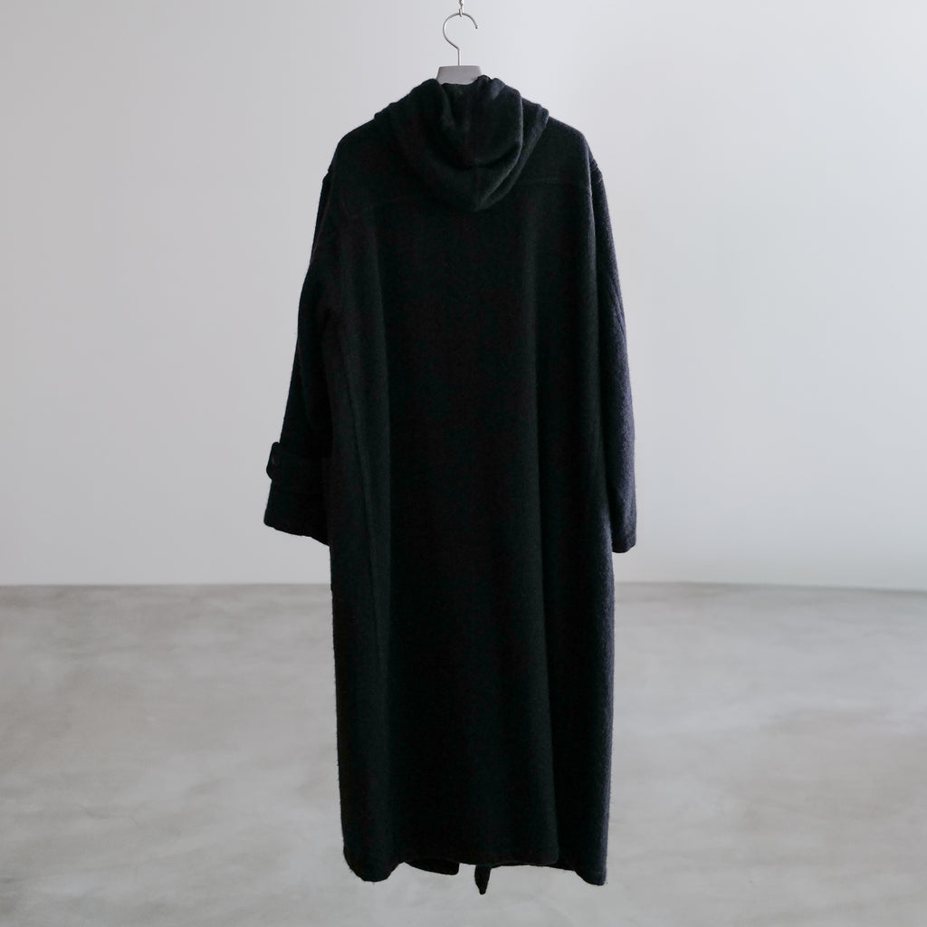 カシミア100%のダッフルコート やや長めの着丈でリラックスフィット 柔らかくとろみのある生地、シルクの総裏地仕様