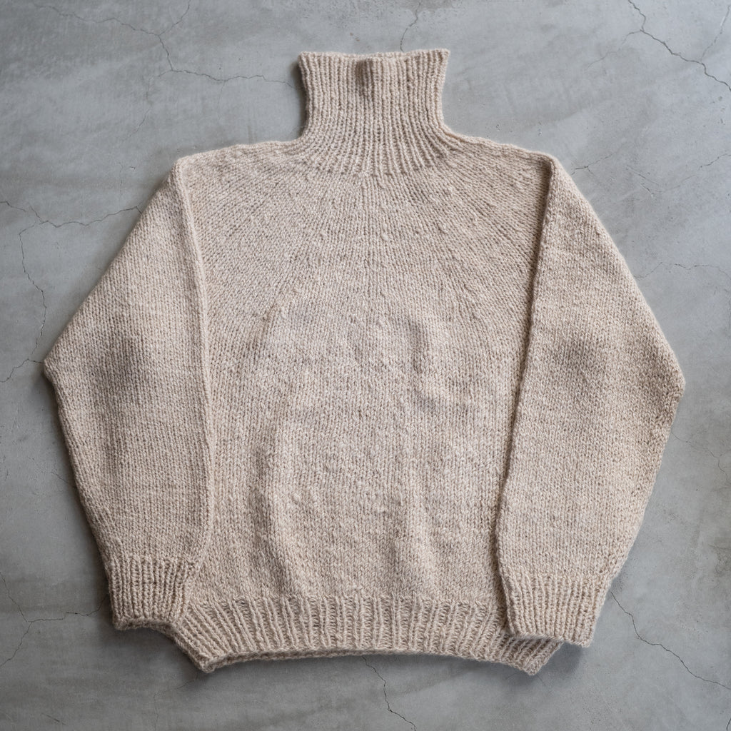 カシミア100%のタートルネックニット ややコンパクトなすっきりしたシルエット 手編みによるシームレスな編地