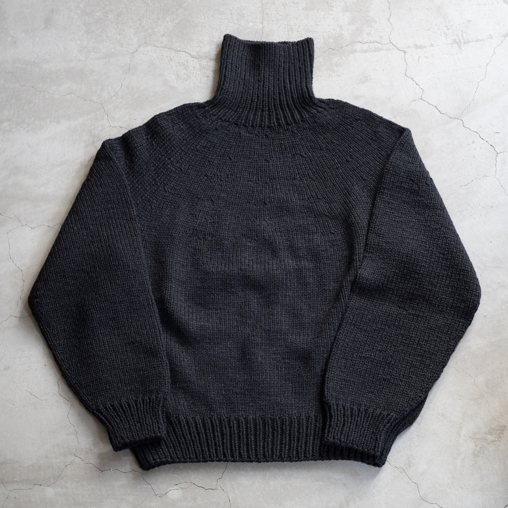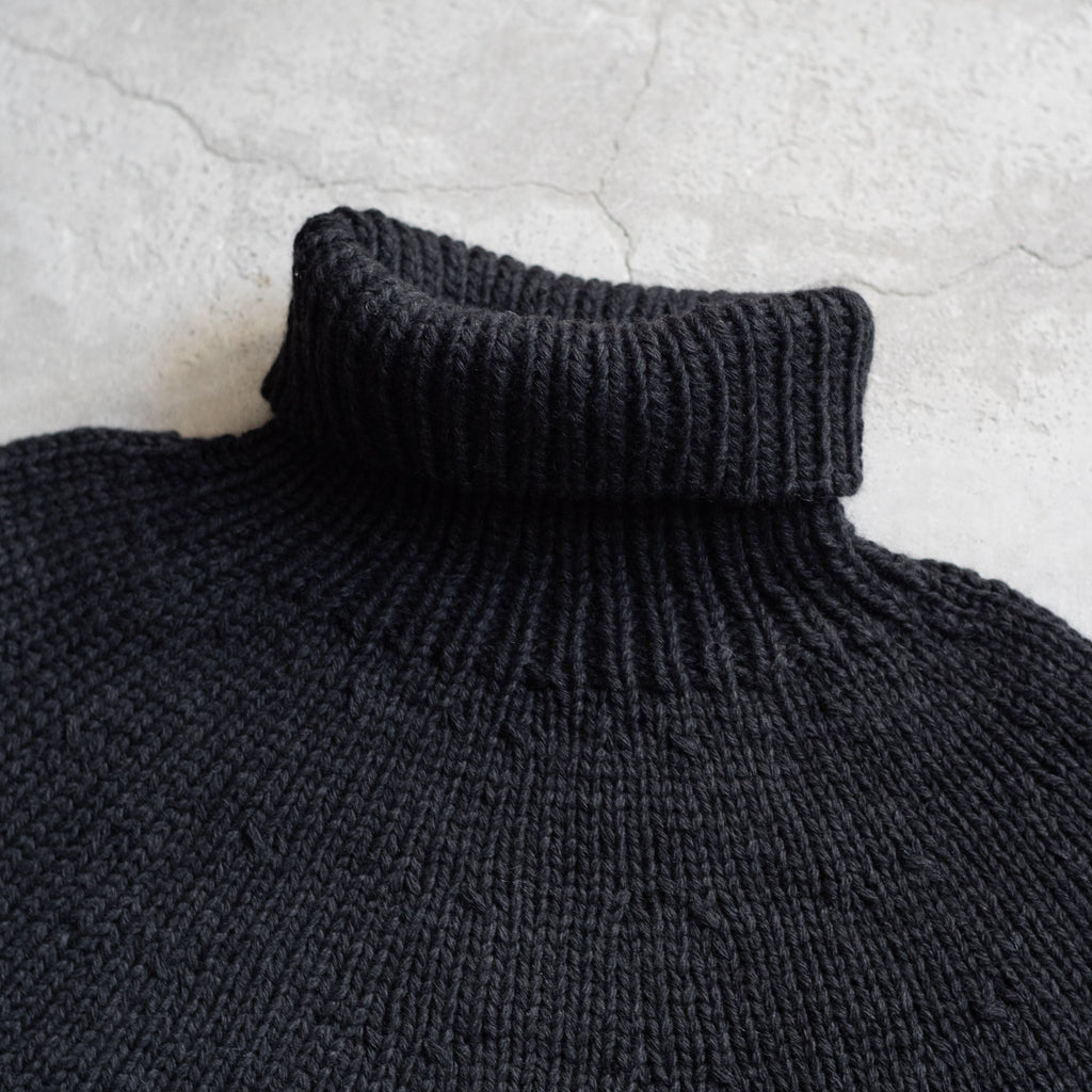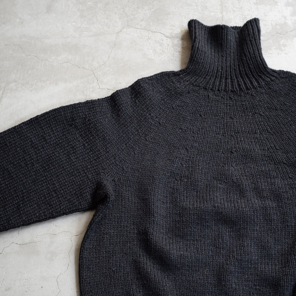 カシミア和紙を使用したタートルネックニット ややコンパクトなすっきりしたシルエット 手編みによるシームレスな編地
