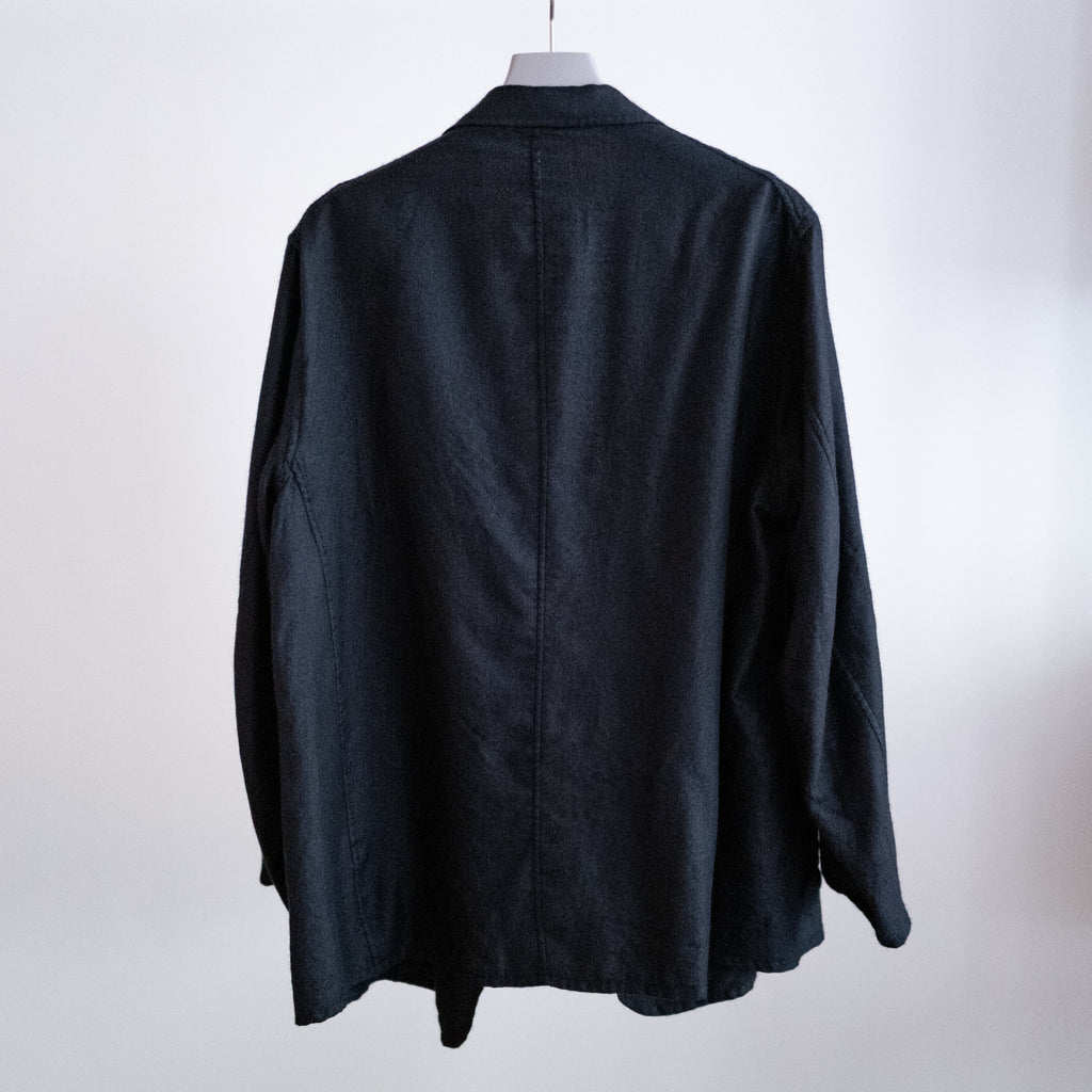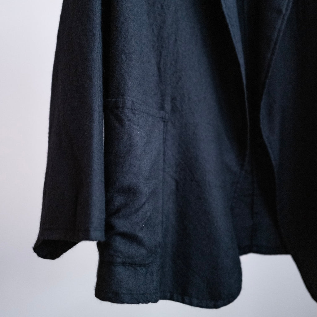 カシミアシルクを使用したボタンレスジャケット 製品染めによる奥行きある生地の風合い 単衣仕立てにより、カーディガンのような軽い着心地
