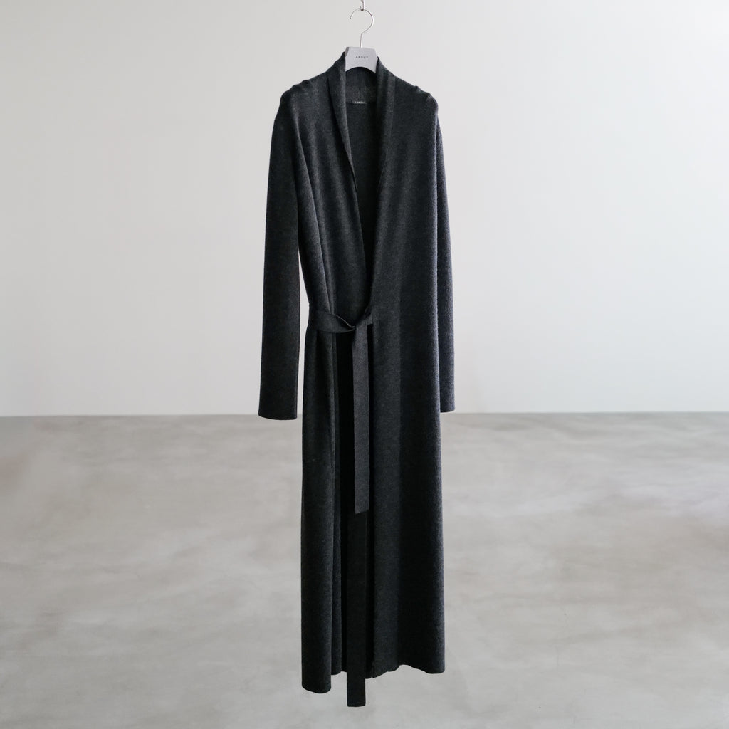 カシミアシルクを使用したローブニット 滑らかな肌当たりと上品な光沢が特徴 ウエストロープを絞っての着用も可能
