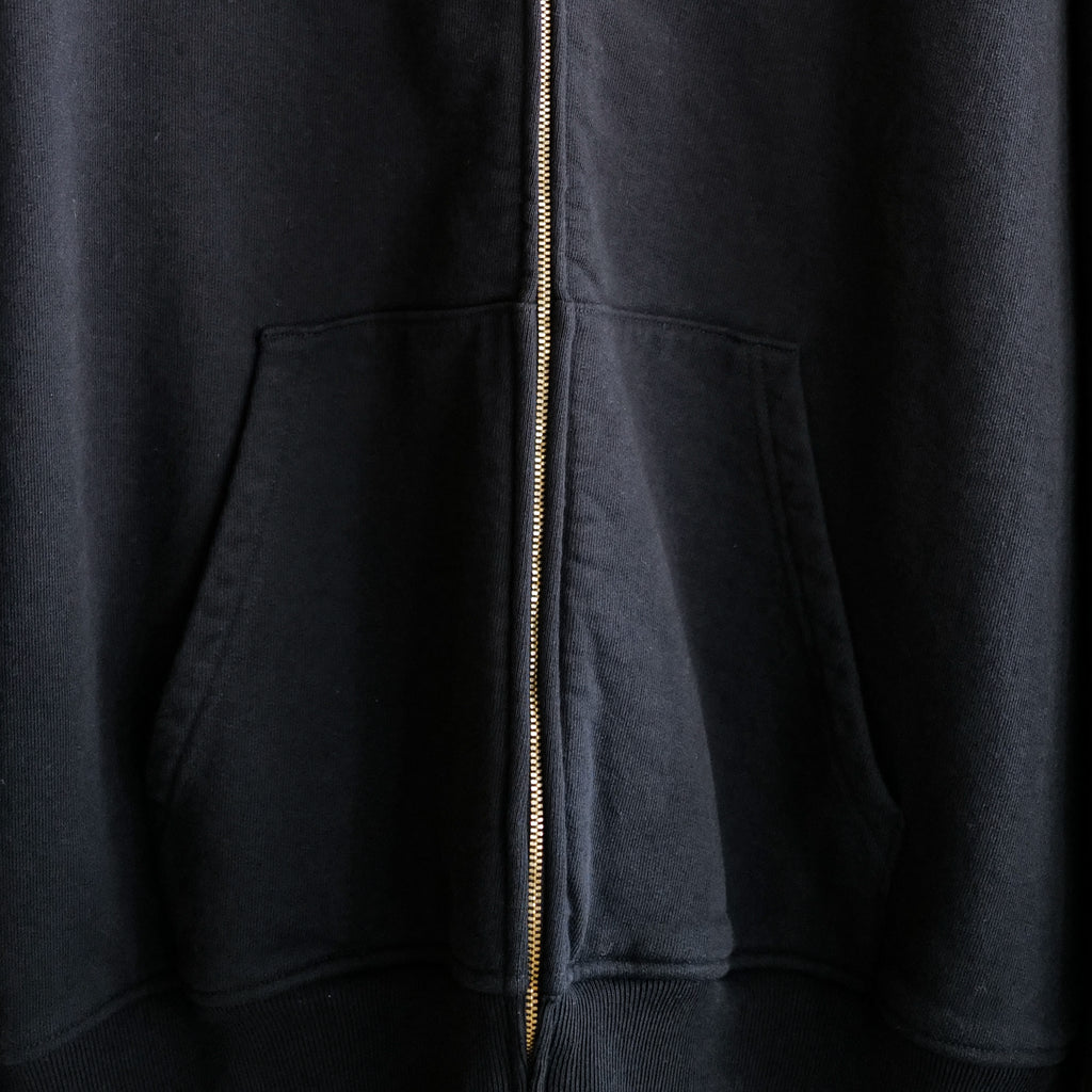 定番のコットン裏毛素材を使用したジップパーカ