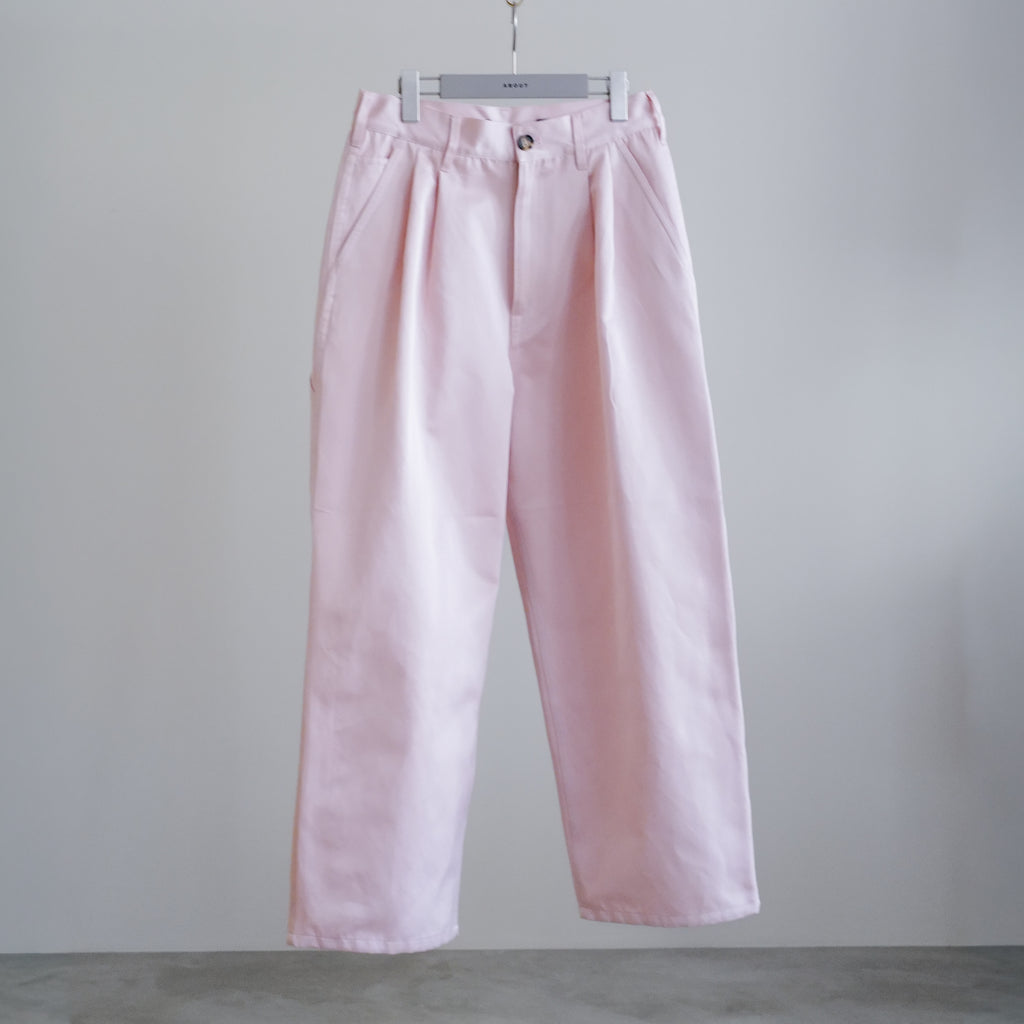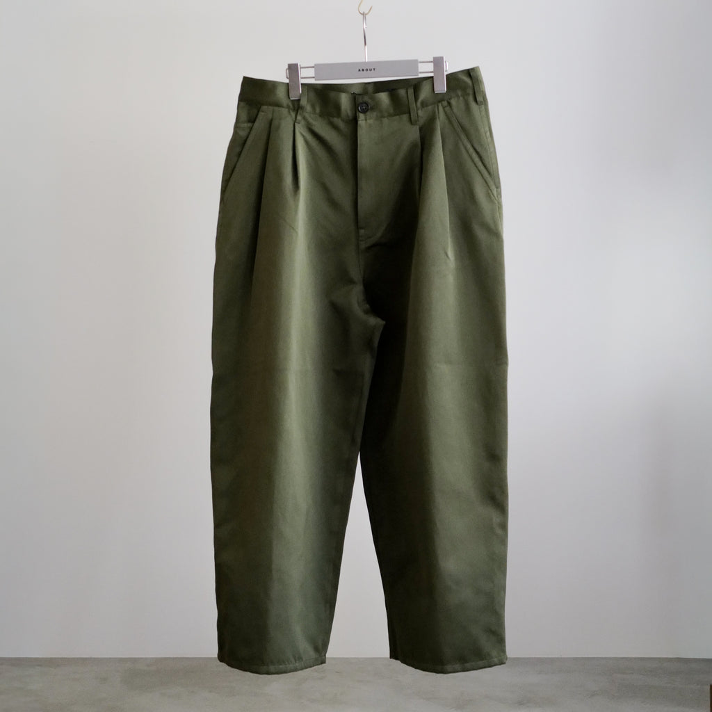 2タックのワイドパンツ ポリエステル100%でモールスキン生地のような質感を表現した、サテン・キュイールを使用 上品な光沢、ふくらみある柔らかな生地が特徴