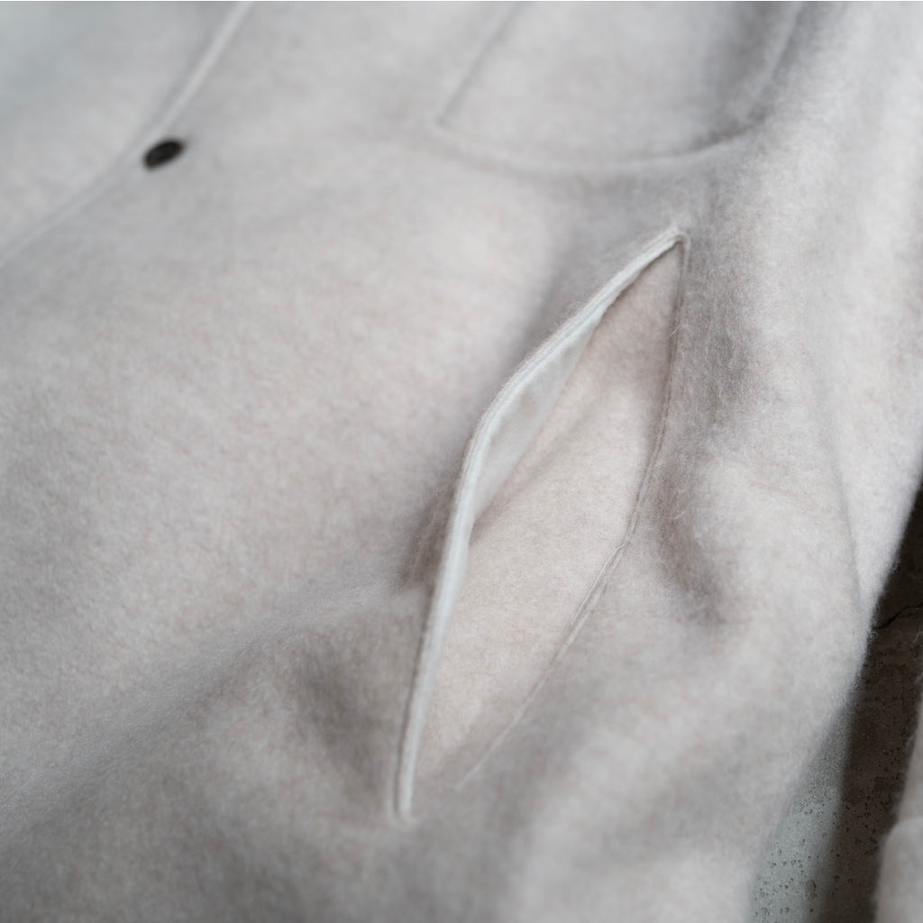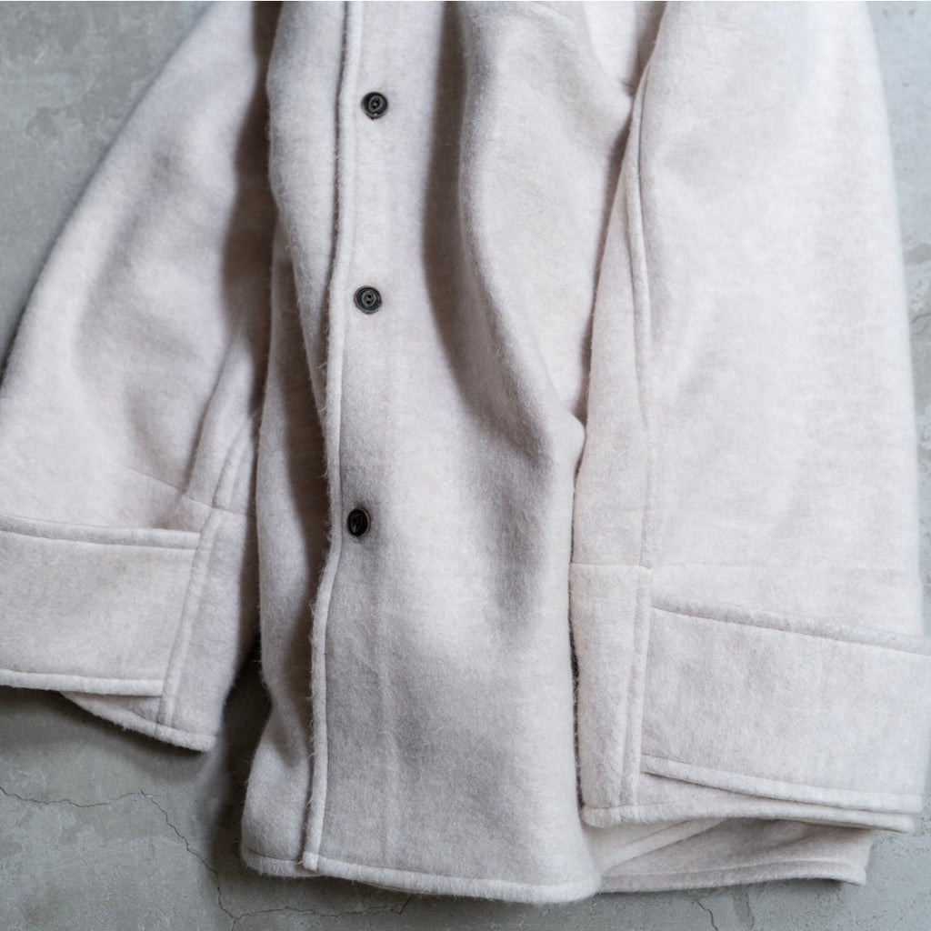 シルクを贅沢に使用したフリース生地 肌に吸い付くような滑らかな肌当たりと上品な光沢 リラックス感のあるオーバーサイズ