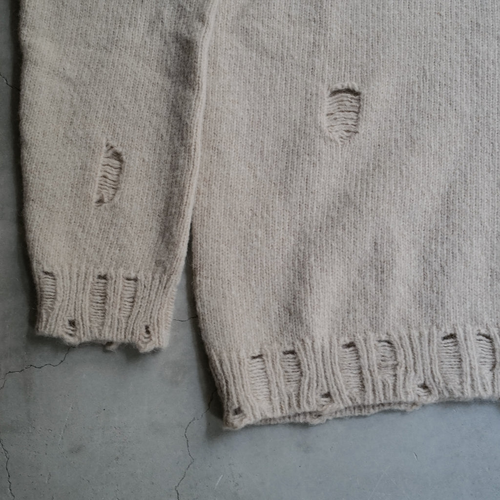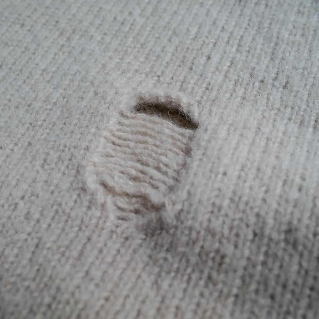 オーバーサイズニット ロールしたネックと、ランダムに施されたダメージ加工が特徴 柔らかくなめらかな肌触り