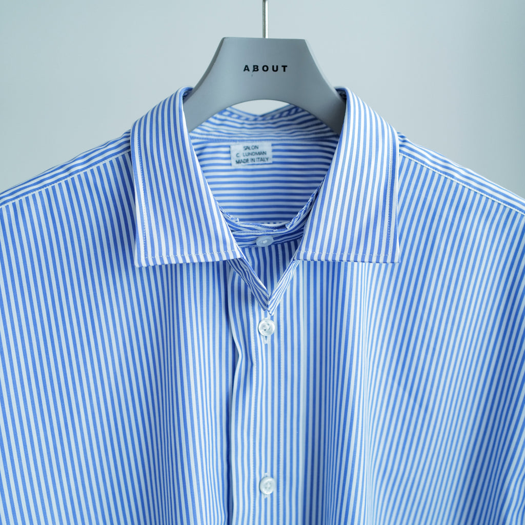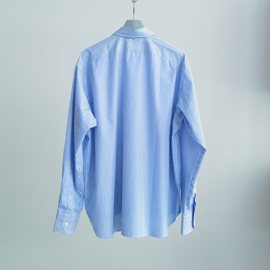 ダブルカラーが特徴的なリラックスフィットシャツ 壊れたシャツの襟を、上から別の襟ただ取り付けるというところから生まれたユニークなデザイン 良質なイタリアコットンによるデッドストック生地を使用