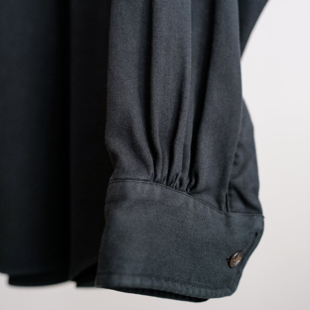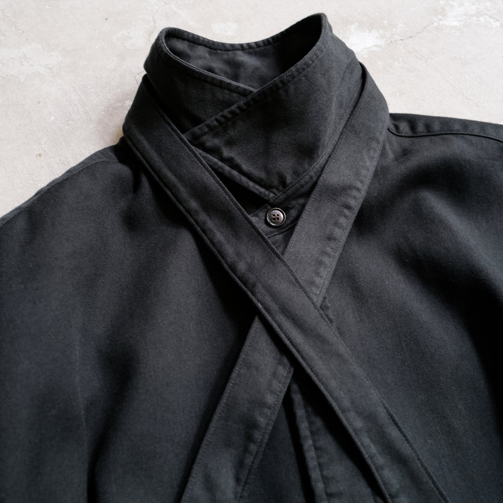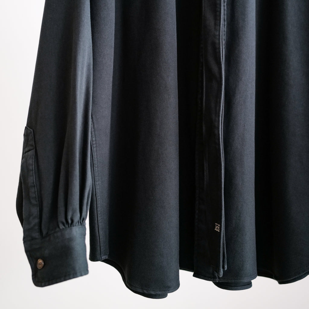 オーバーサイジングのボウタイシャツ スーピマコットンを使用した、柔らかくふくらみのあるツイル生地 共生地のリボンは取り外し可能 シンプルなオーバーサイズシャツとしても着用可能なため、幅広い着こなしが可能
