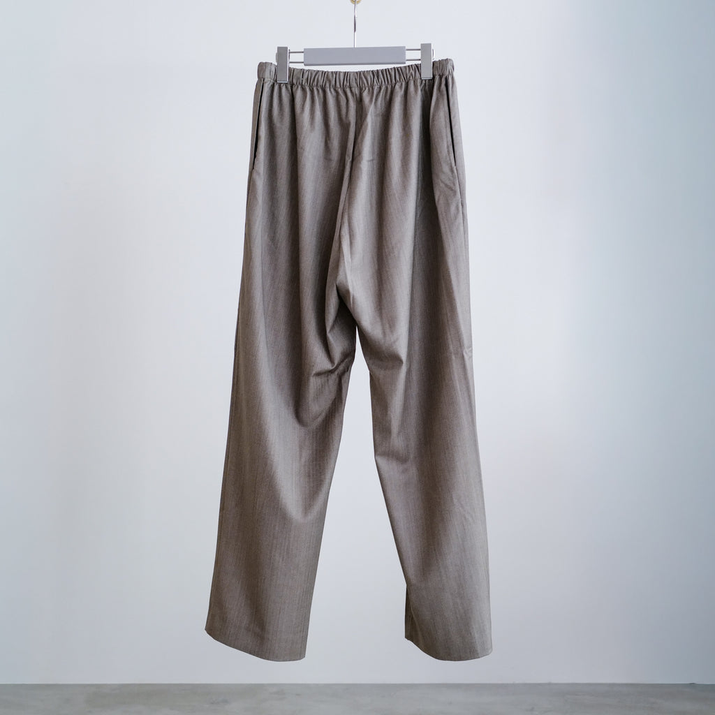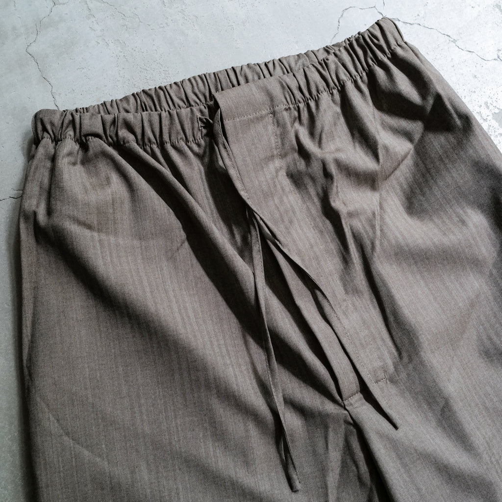 イタリアの老舗生地メーカーLoro Piana社のウール生地「HELIOS」を使用したイージーパンツ 高い撥水性と細やかなヘリンボーン織り ゆとりのあるサイズ感で、リラックスした着用感が特徴