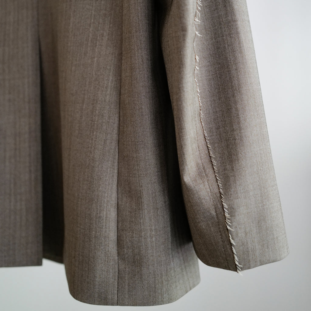 イタリアの老舗生地メーカーLoro Piana社のウール生地「HELIOS」を使用した1Bジャケット 高い撥水性と細やかなヘリンボーン織り やや縦長のすっきりしたシルエットが特徴