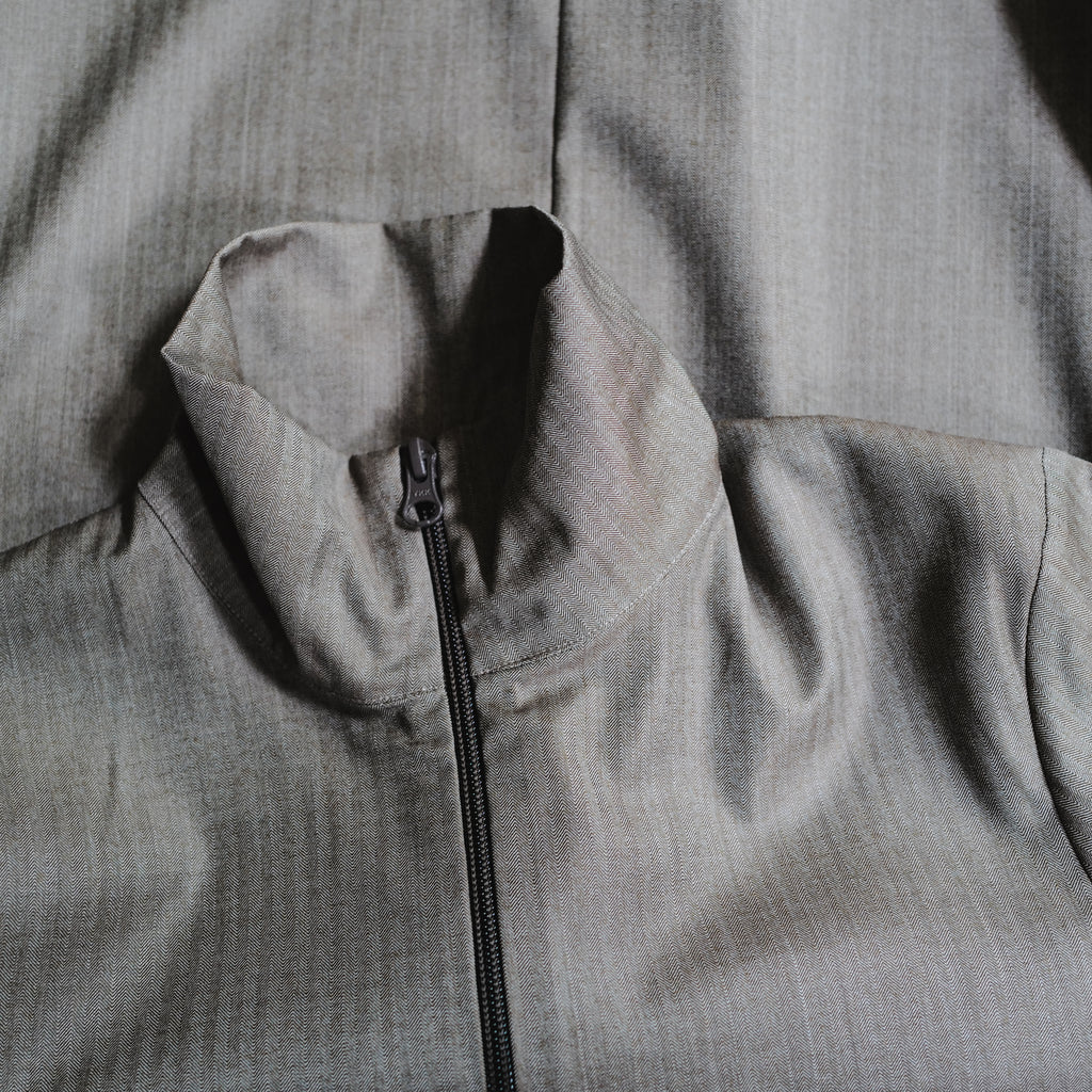 イタリアの老舗生地メーカーLoro Piana社のウール生地「HELIOS」を使用したジップシャツジャケット 高い撥水性と細やかなヘリンボーン織り ややスリムな身幅と、細みのアームホールでスタイリッシュな印象 裾はカットオフ仕様