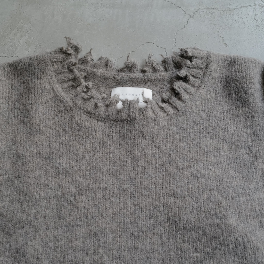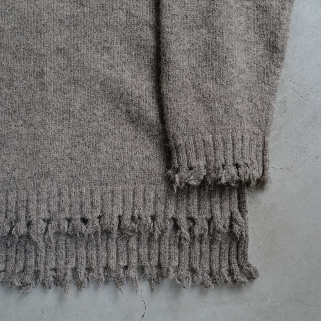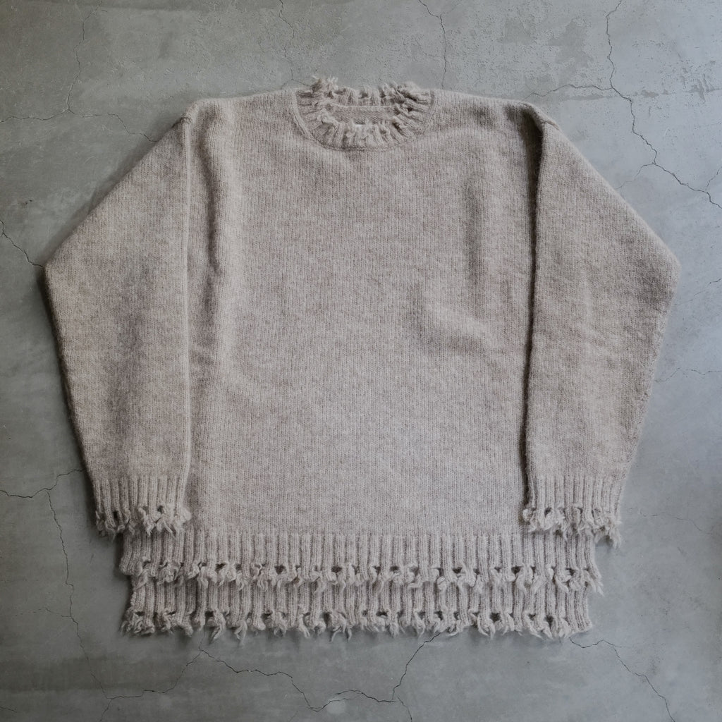 オーバーサイズクルーネックニット 裾、袖、首周りに施されたフリンジ加工が特徴 ベビーアルパカを使用した柔らかなニット生地