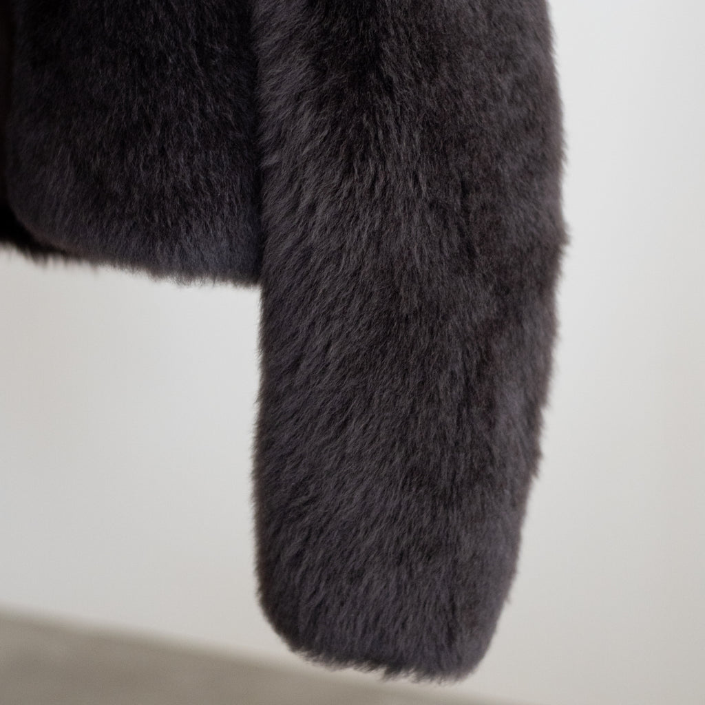 羊のファーを使用したボレロ 美しい毛並みと上品な光沢が特徴 裏地にはシルクを贅沢に使用、ノンストレスな着用感