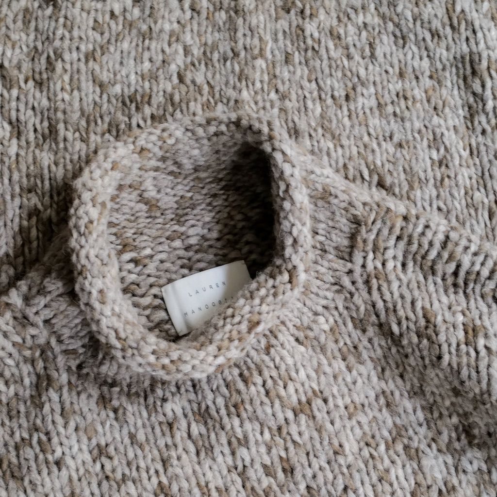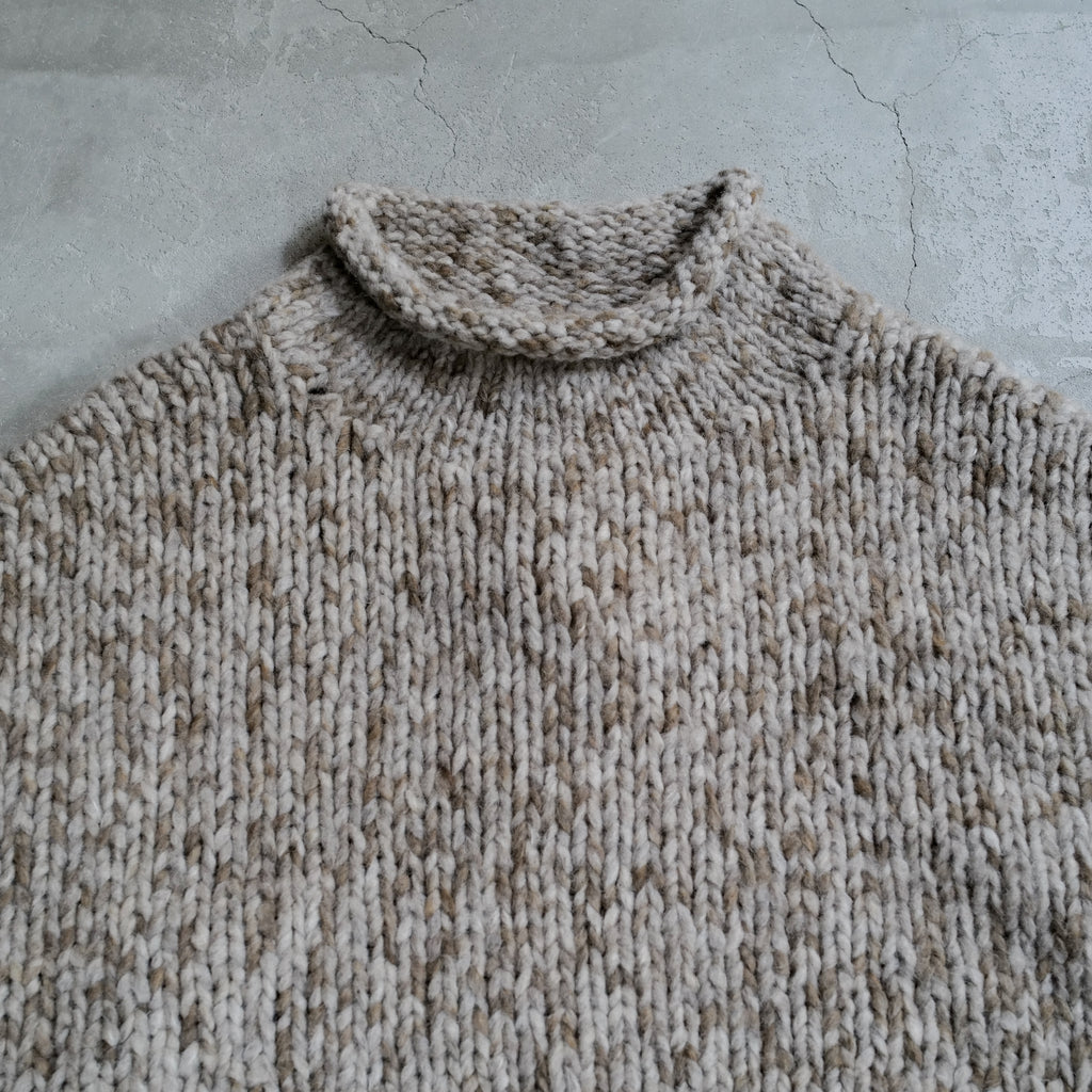 手染め、手編みによるオーバーサイズニット 複数の色の糸によって編みこまれた奥行きあるカラー ざっくりとした編地、アルパカ混の柔らかな肌触り
