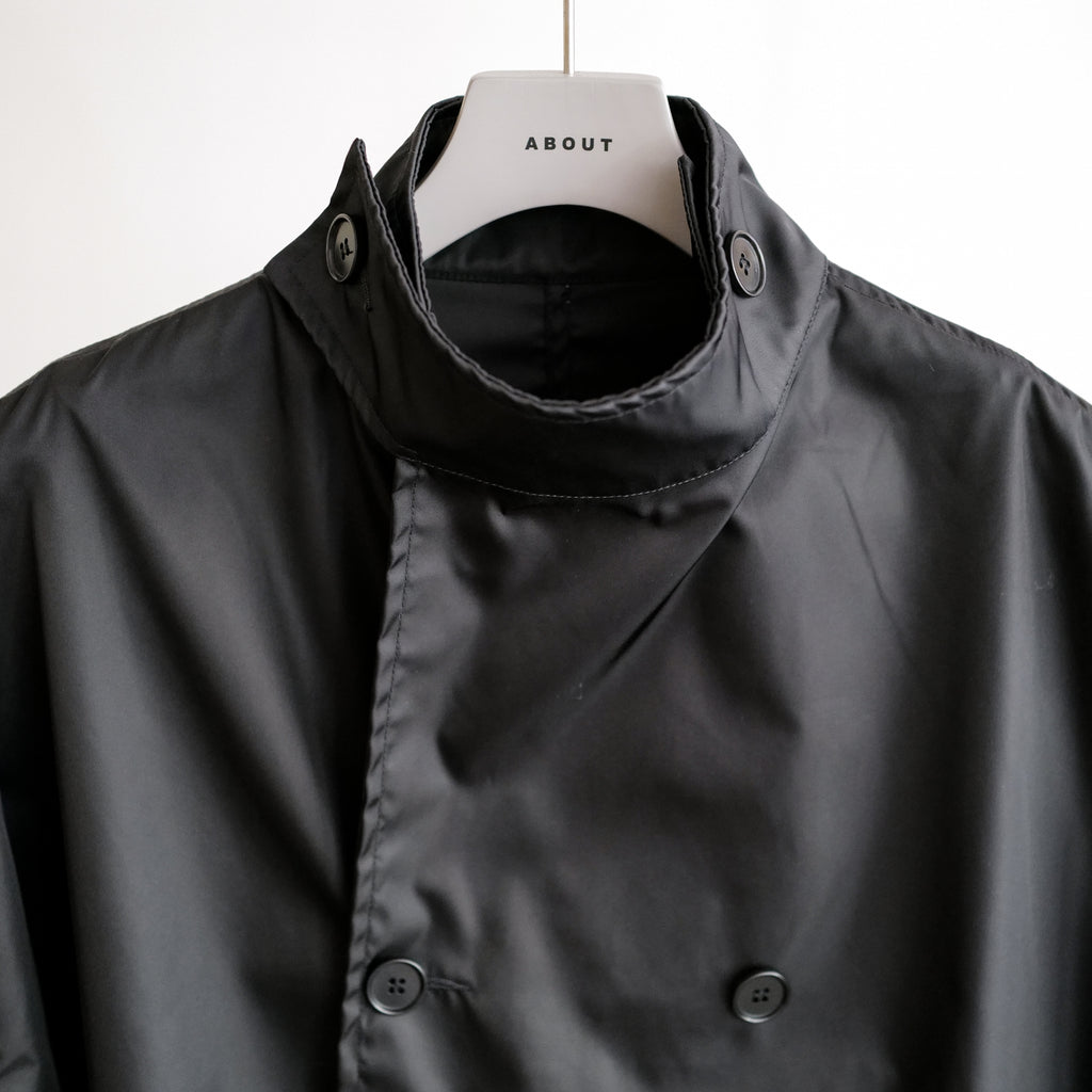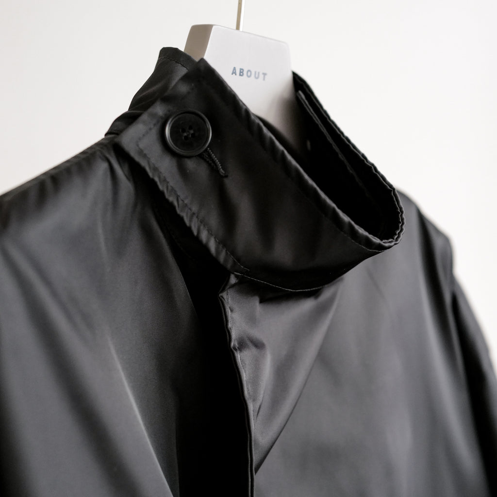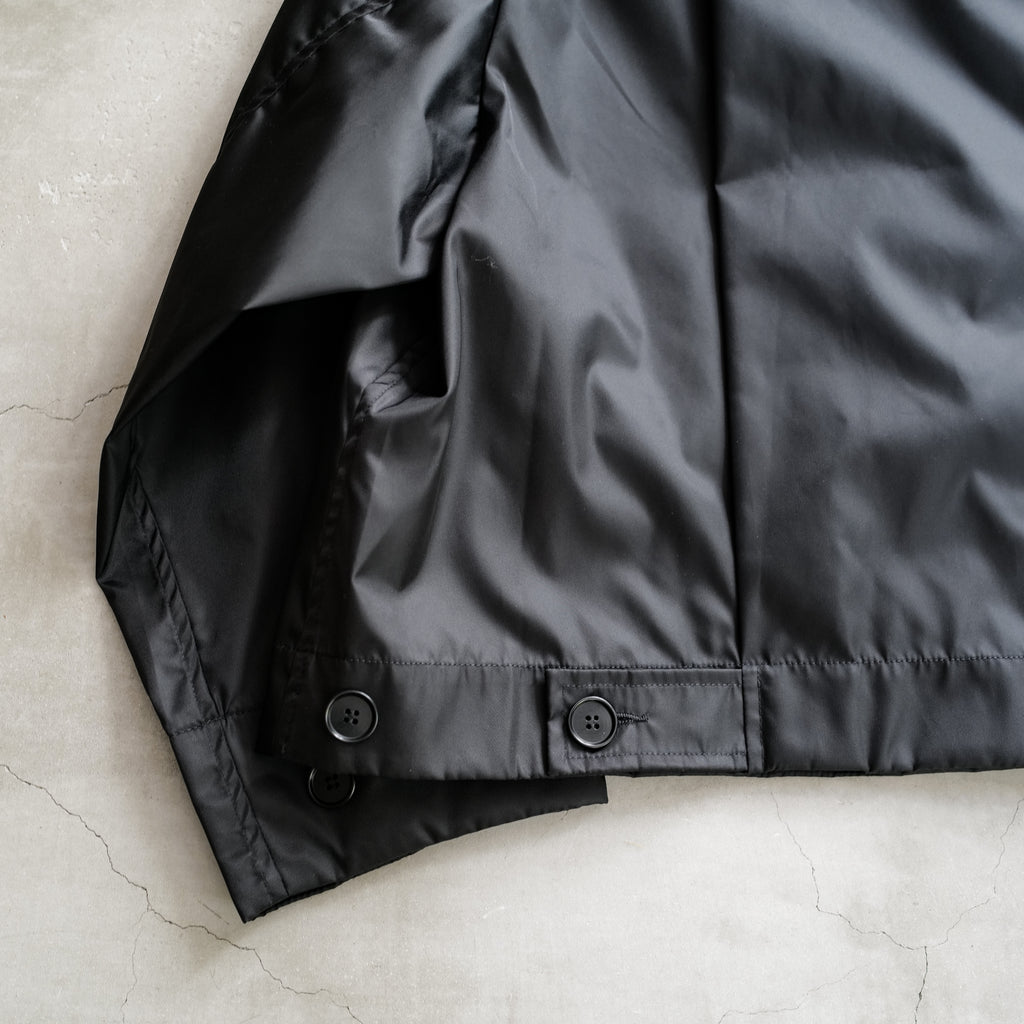 スタンドカラー型のオーバーサイズジャケット 生地はリモンタ社のナイロン生地を使用 適度なハリと短丈のシルエットが特徴