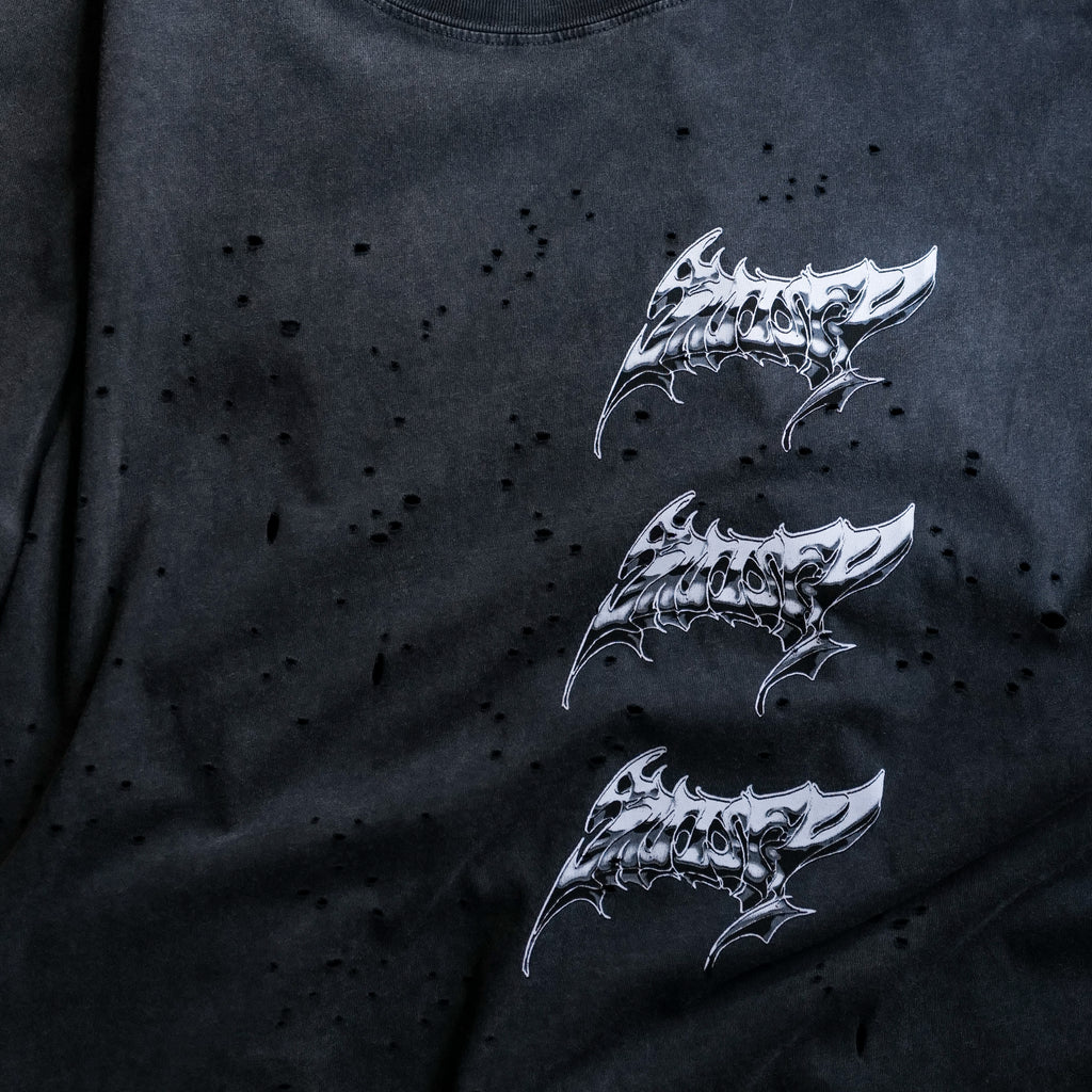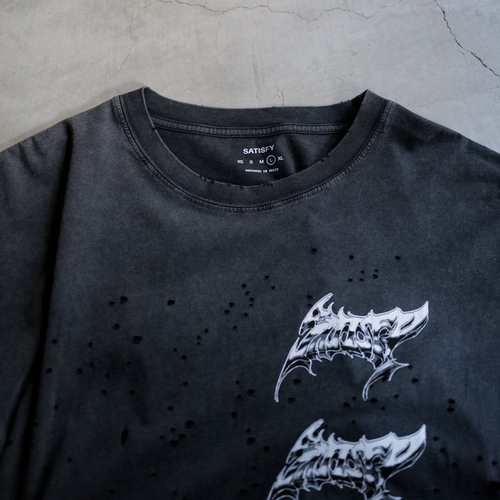 クルーネックの半袖Tシャツ 人体の熱が溜まりやすい部分である胸や脇下に、ベンチレーション兼デザインであるホールを施したユニークな1着 オーガニックコットン100%を使用した滑らかな肌触り 前身頃のケアラベルは取り外し可能