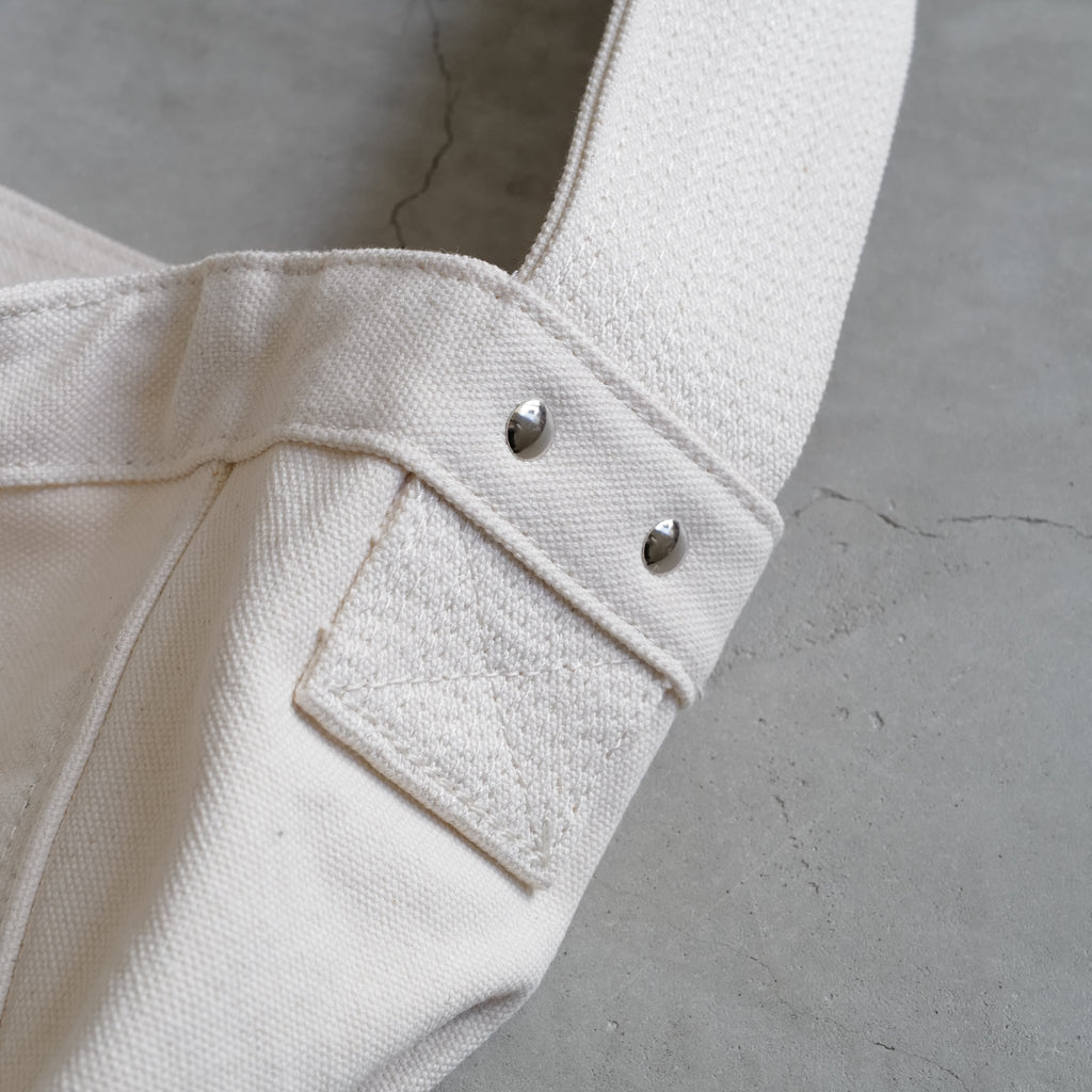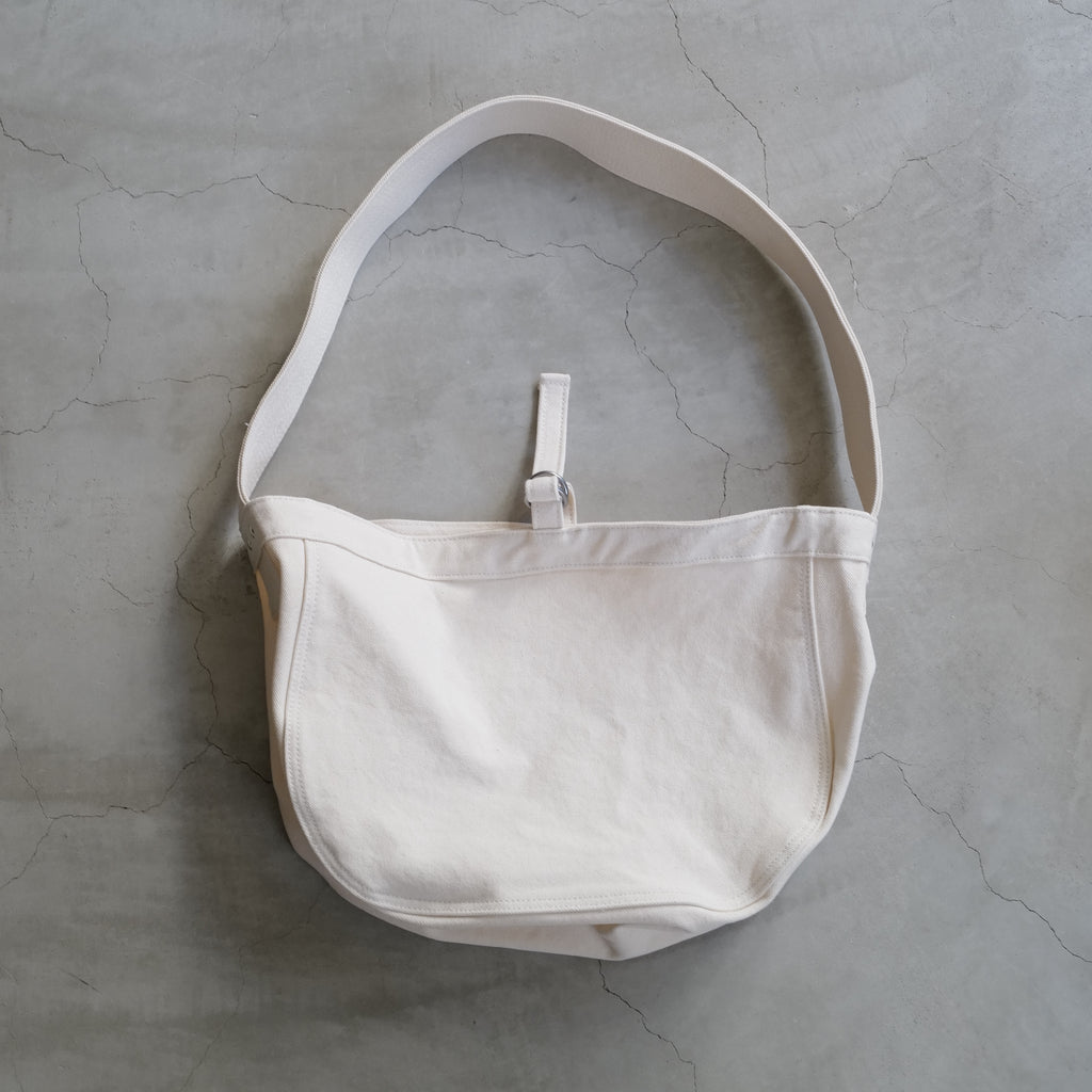 1930年代に新聞配達の子供たちが持っていたニュースボーイバックから着想を得たバック 広のショルダーハンドルと広めのマチは当時のままだが、ショルダーハンドルを短くし、ボディバッグのようなフォルムに再構築 ウォッシュ加工を施した柔らかなコットンキャンバス生地を使用