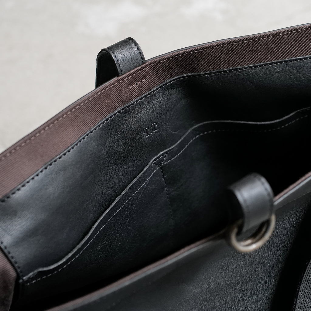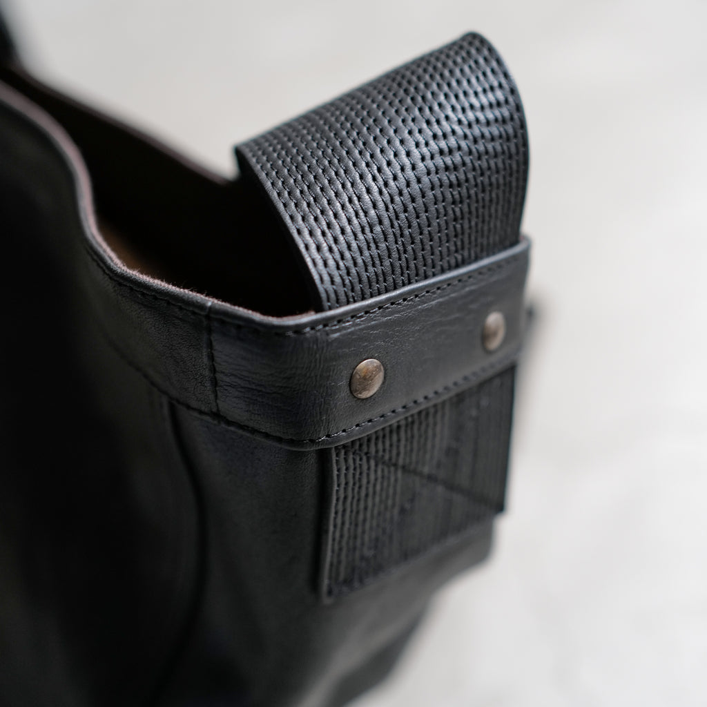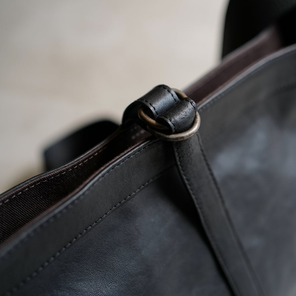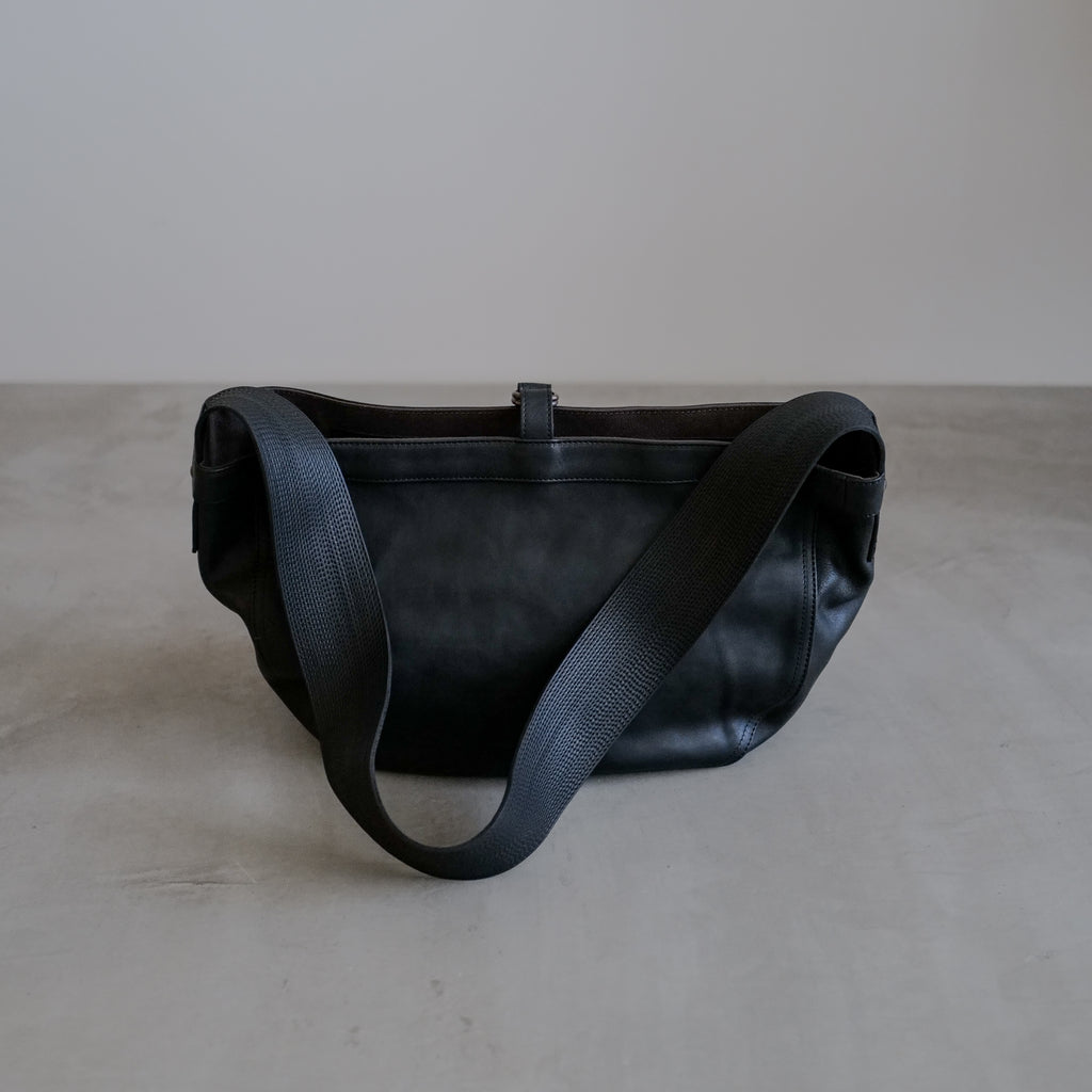 1930年代に新聞配達の子供たちが持っていたニュースボーイバックから着想を得たバック 広のショルダーハンドルと広めのマチは当時のままだが、ショルダーハンドルを短くし、ボディバッグのようなフォルムに再構築 植物タンニン鞣しを施したホースハイドを使用