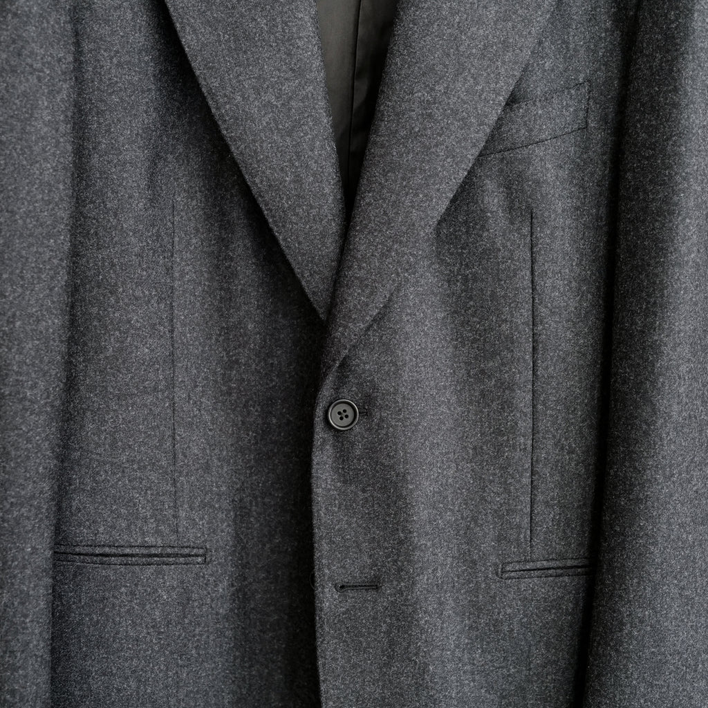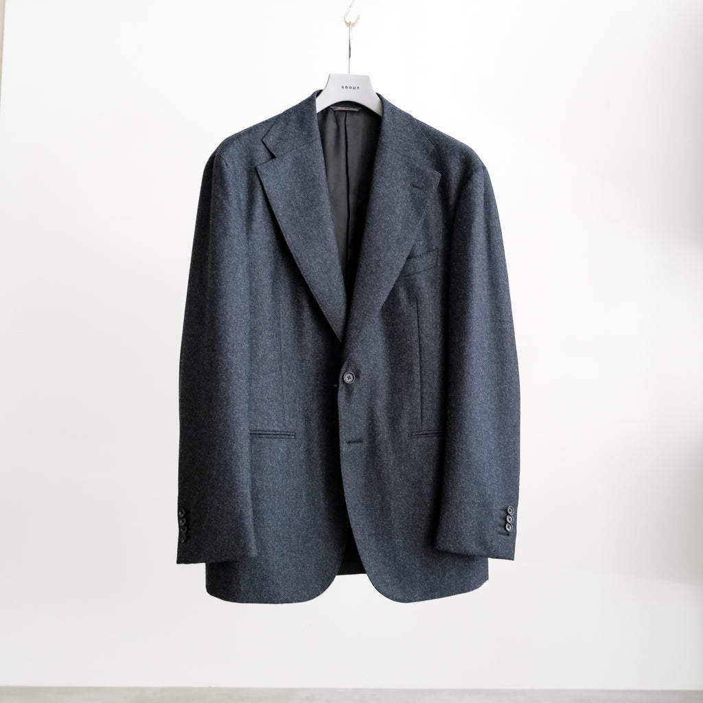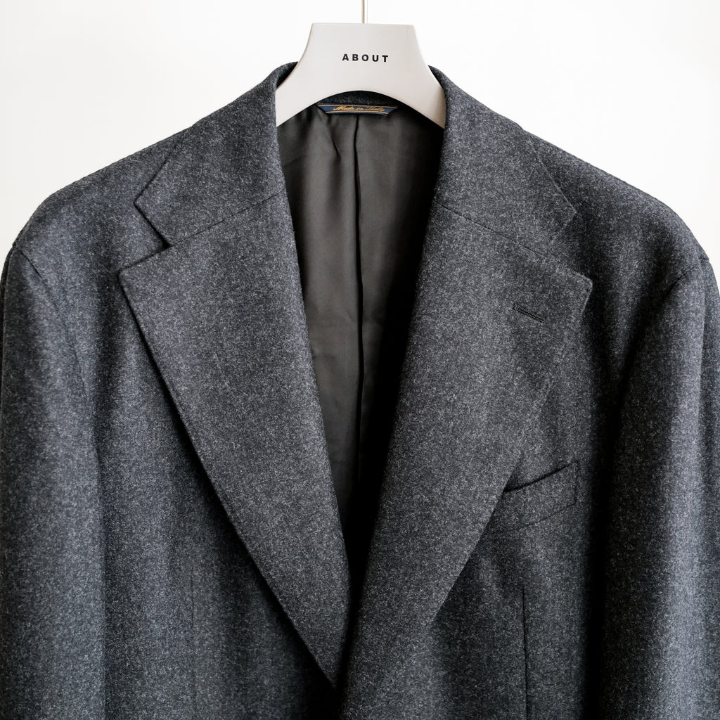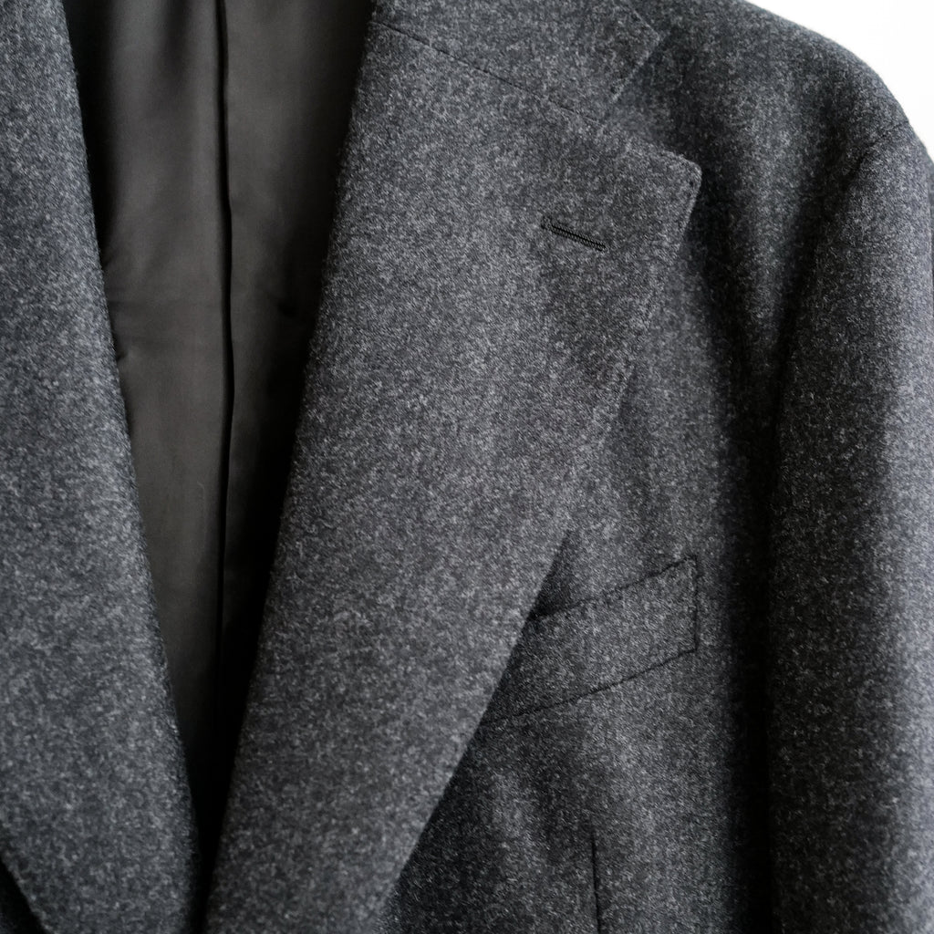 上質なウール100%を使用したテーラードジャケット 肩パッドを入れず、アームホールを低く設定することでリラックスしたフィット感が特徴 袖付けなど、多くの工程を手作業で仕上げる