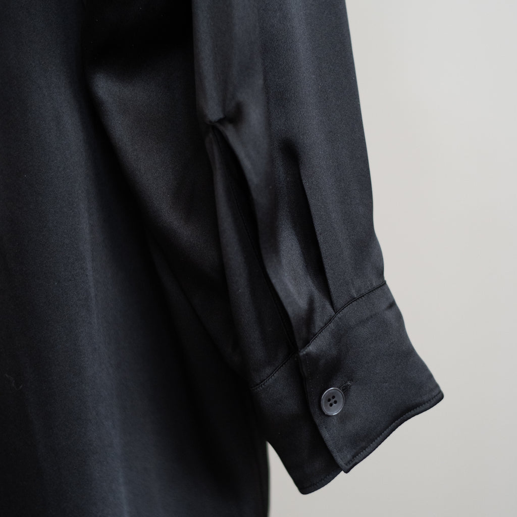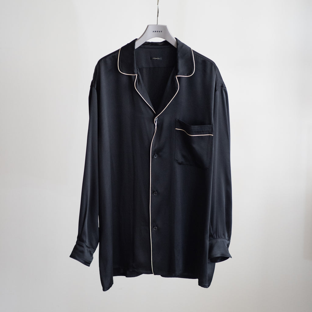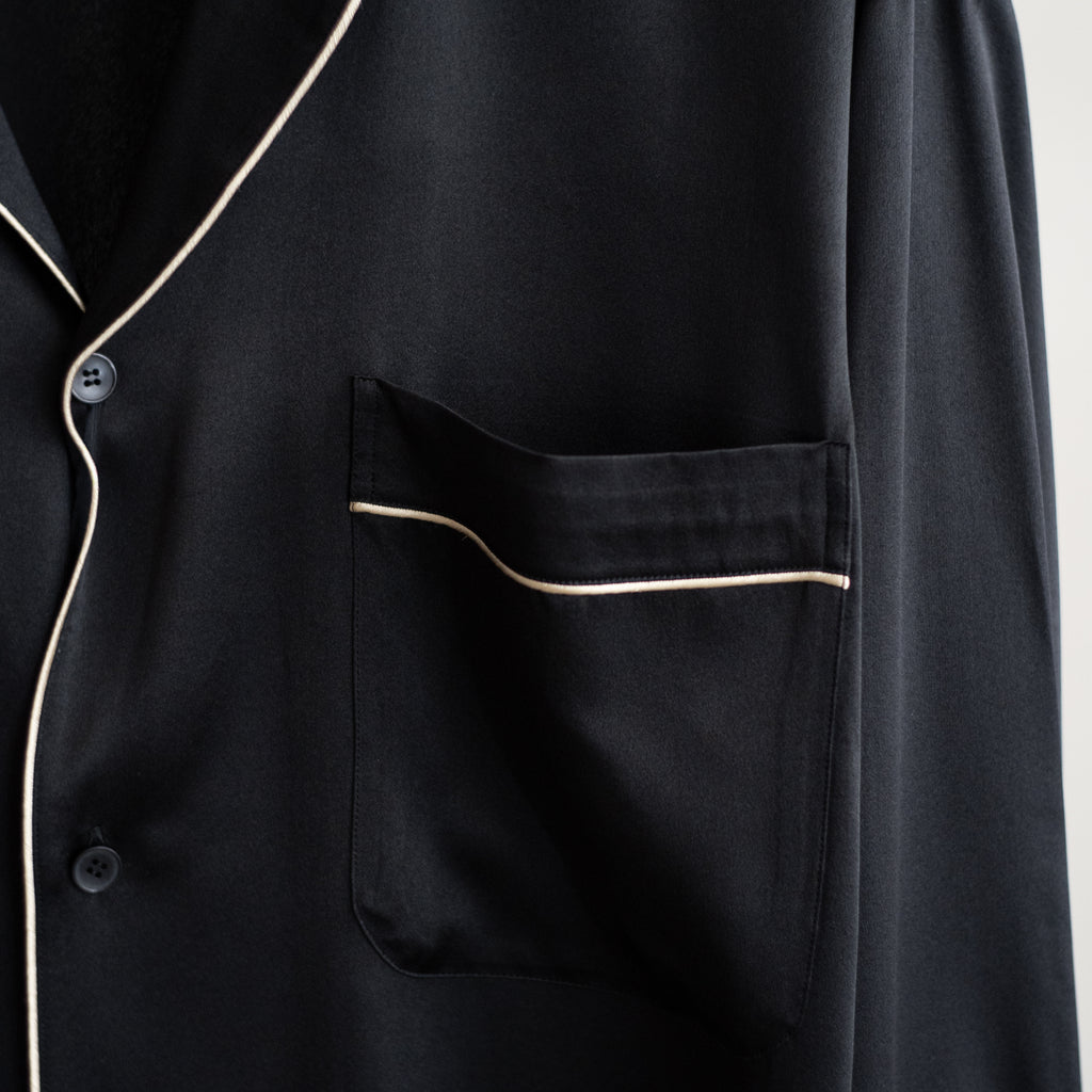 シルク素材のパジャマシャツ パジャマシャツらしいオープンカラーとパイピングが特徴 共生地のパジャマパンツとあわせての着用もおすすめ