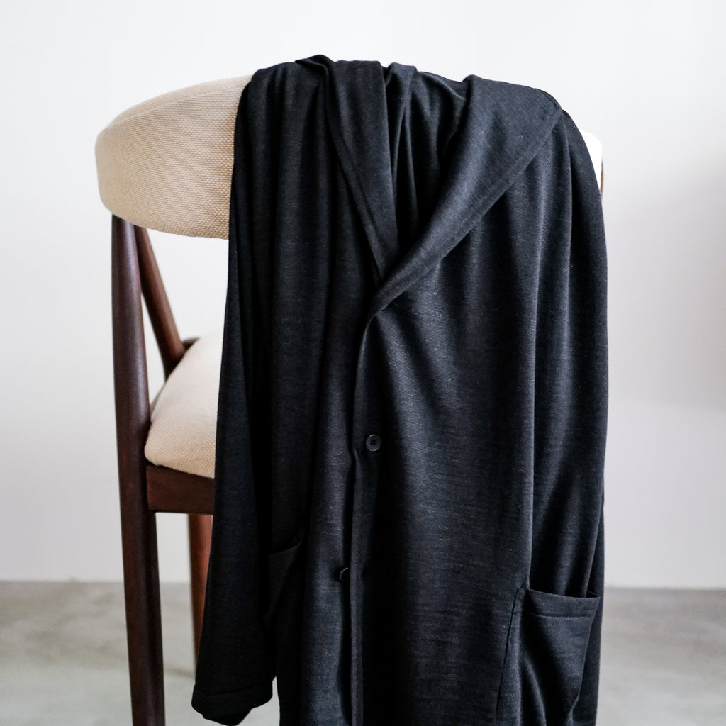 継続して展開されているサマーウールを使用したジャケット 細番手のウール糸で編立られ、滑らかな肌触りで上質な着心地 ウール素材ならではの吸湿性や速乾性、防臭効果なども兼ね備える