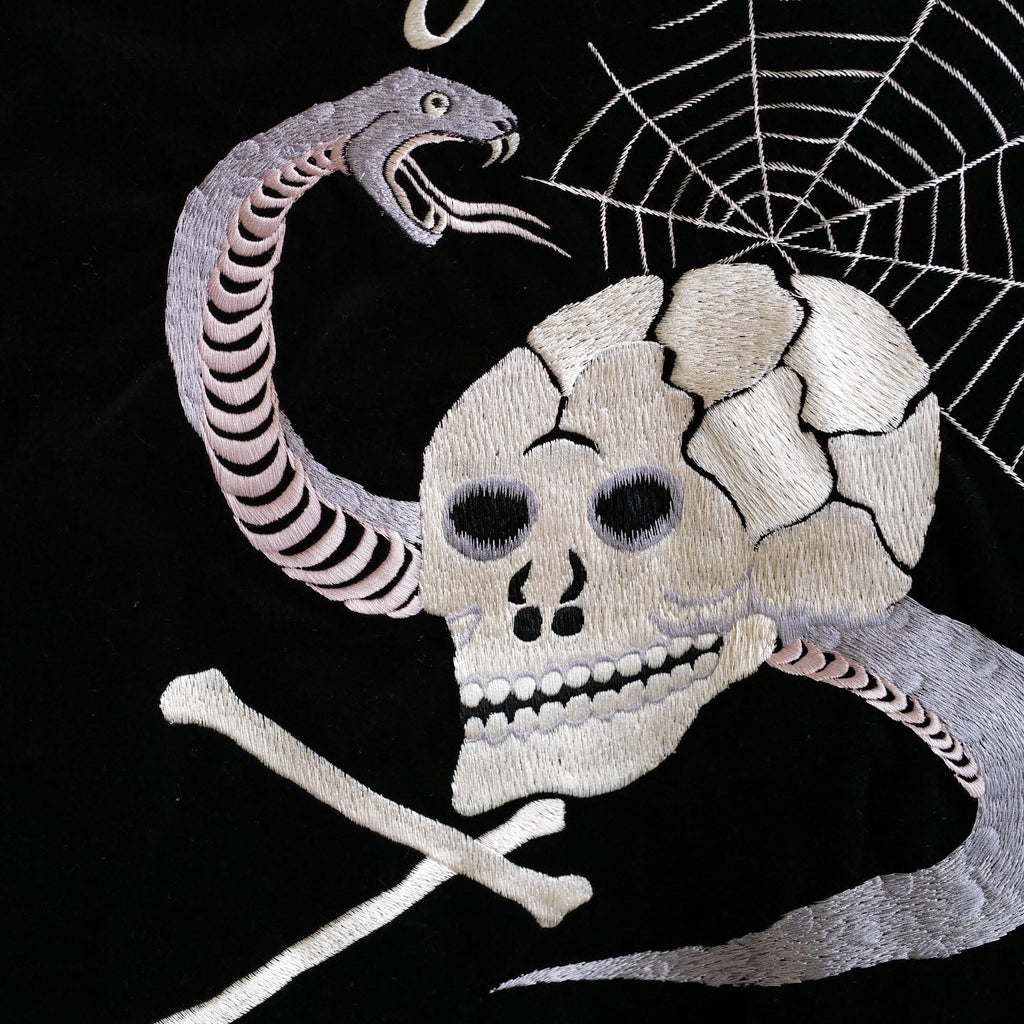 ヴィンテージスカジャンの中でも、群を抜いて希少価値の高い蛇髑髏柄を復刻したモデル